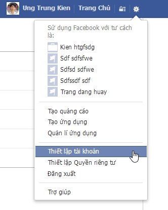 Đầu tiên bạn nhấn vào cài đặt -> Thiết lập tài khoản như trên hình ảnh hoặc Click tại đây